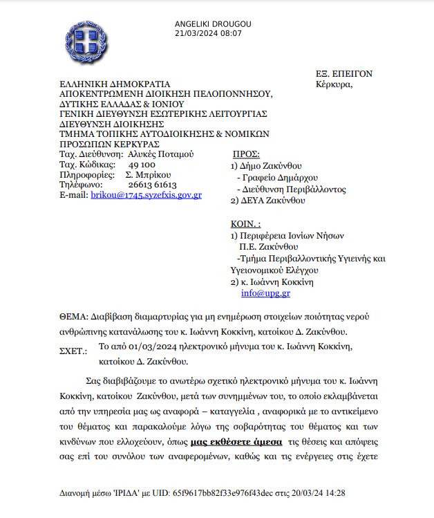 ΕΠΕΡΩΤΗΣΗ 5η: Ποιά είναι η τύχη των έργων « ΑΝΤΙΚΑΤΆΣΤΑΣΗ ΚΕΝΤΡΙΚΟΎ ΑΓΩΓΟΎ ΎΔΡΕΥΣΗΣ ΖΥΓΟΎ – ΝΗΣΑΚΊΟΥ» και «ΑΝΤΙΚΑΤΆΣΤΑΣΗ ΕΣΩΤΕΡΙΚΟΎ ΔΙΚΤΎΟΥ ΎΔΡΕΥΣΗΣ ΆΦΡΑΣ» στην Κέρκυρα;