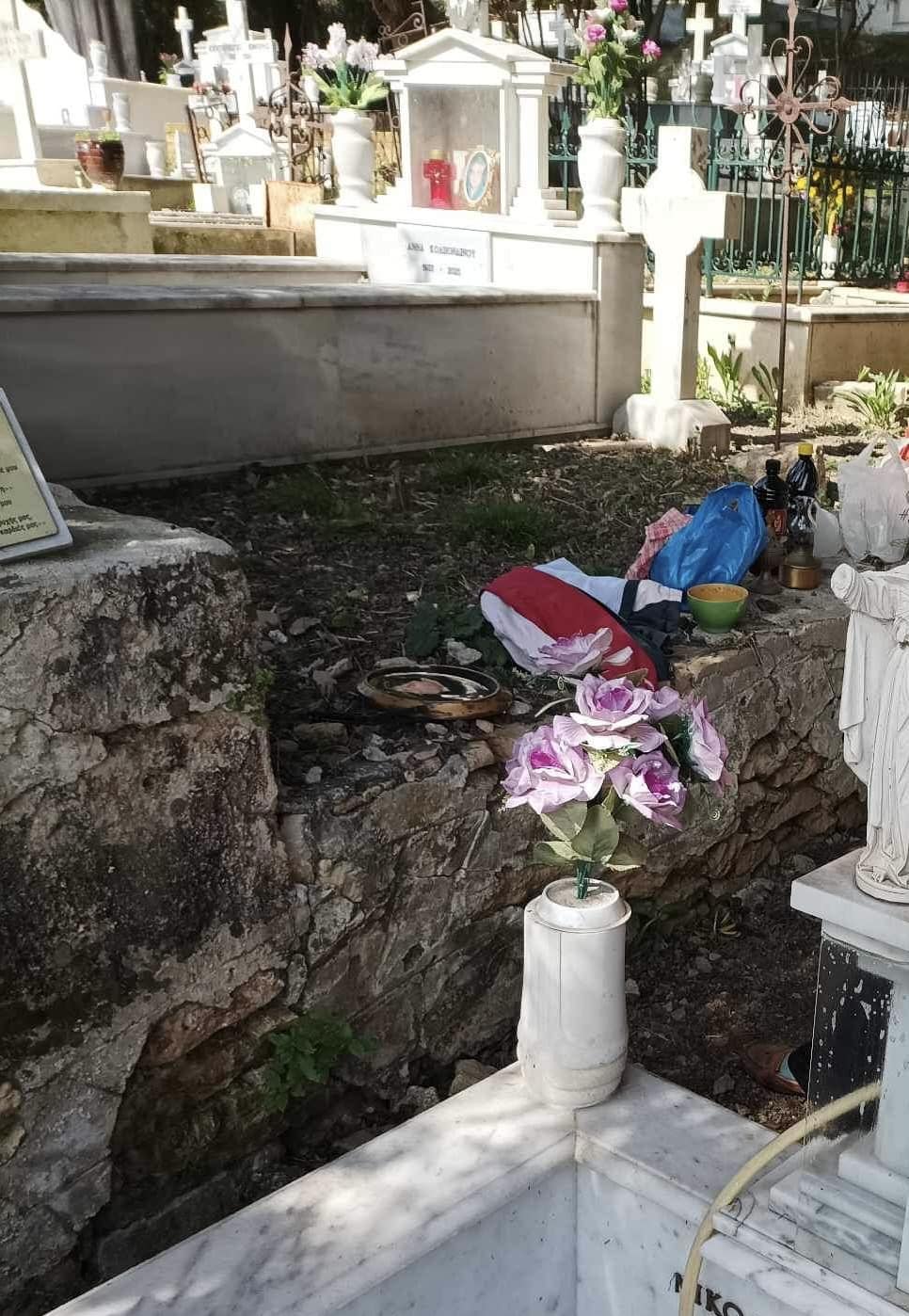 Σήμερα στις 6.20 το πρωί πήγα στο νεκροταφείο της Αγίας Παρασκευής στην Αγία Τριάδα και αντίκρισα ένα βομβαρδισμένο τοπίο, με σκουπίδια και χόρτα.