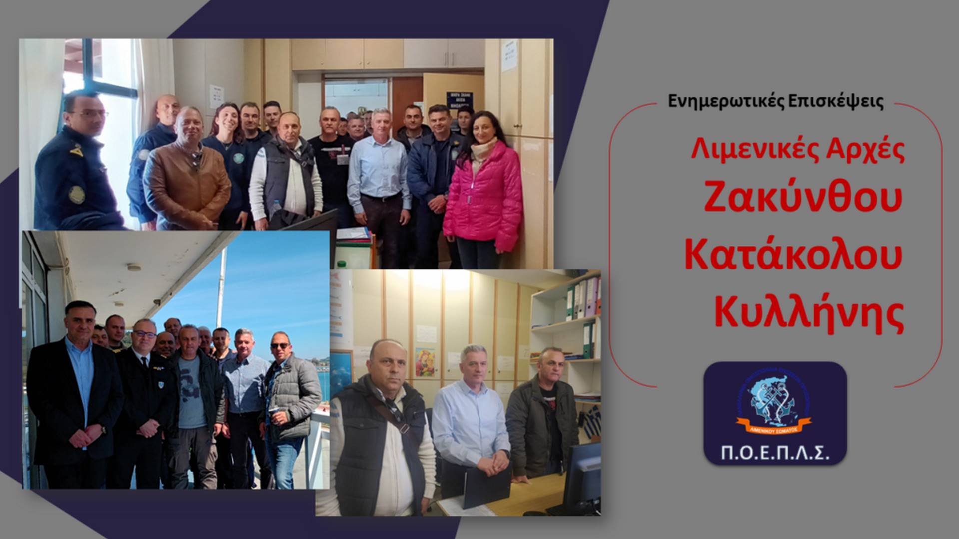 Στο πλαίσιο των ενημερωτικών επισκέψεων της Π.Ο.Ε.Π.Λ.Σ. σε Λιμενικές Αρχές και μετά από πρόσκληση της ΕΠΛΣ/ΚΙΖΗ, στις 20-21/4/23 κλιμάκιο της Ομοσπονδίας μας, βρέθηκε στις Λιμενικές Αρχές Ζακύνθου, Κατάκολου και Κυλλήνης.