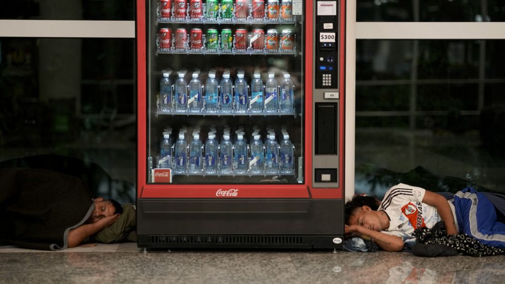 Αυξανονται διαρκώς οι άστεγοι που βρίσκουν καταφυγιο στο αεροδρομιο του Μπουενος Αιρες. ΟΙ επιβάτες που σπεύδουν σε αυτό για τις πτήσεις τους, βρίσκονται αντιμέτωποι με μια αποκρουστική εικόνα. Δεκάδες είναι οι άνθρωποι που διανυκτερεύουν εκεί, κάθε νύχτα.