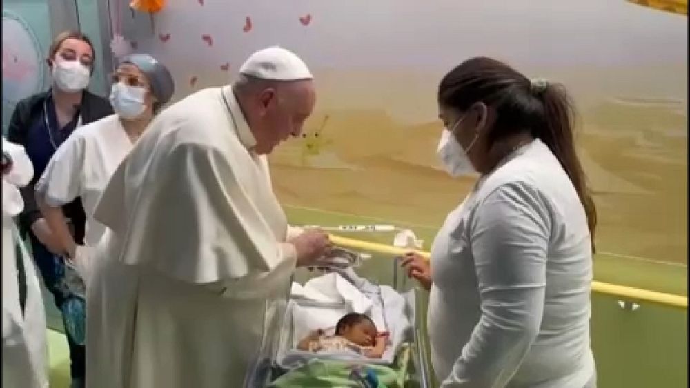 Στις πρώτες φωτογραφίες του Πάπα Φραγκίσκου μετά την εισαγωγή του στο νοσοκομείο, ο Ποντίφικας φαίνεται να βαφτίζει ένα νεογέννητο μωρό. Ο Πάπας επισκέφθηκε για μισή ώρα τους αρρώστους στο νοσοκομείο στο οποίο νοσηλεύεται με βρογχίτιδα.