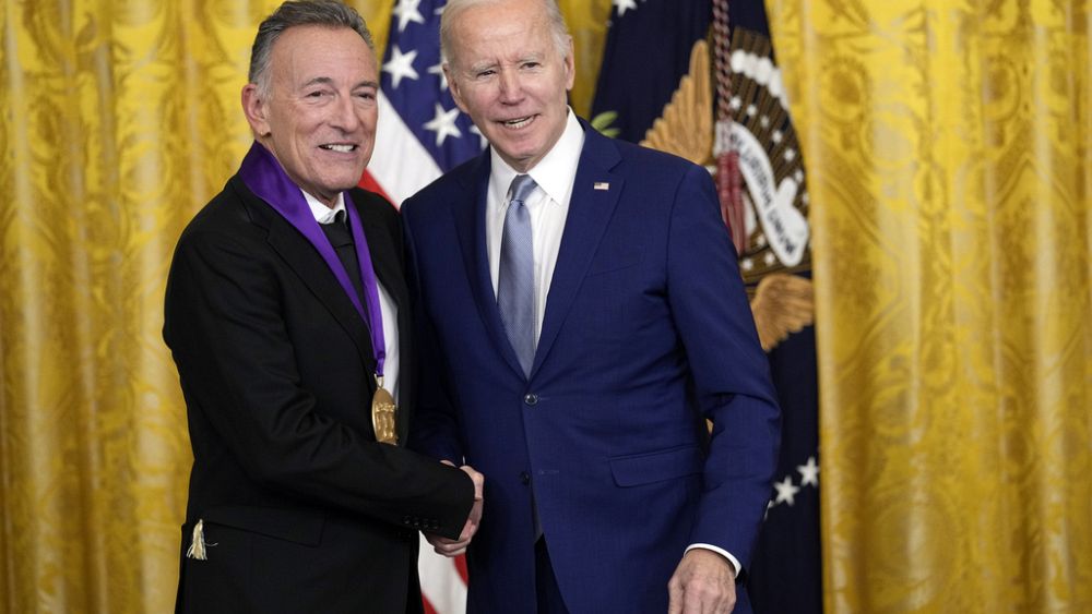 Απευθυνόμενος στον θρύλο της ροκ, που πήγε να παραλάβει το μετάλλιο με κοστούμι και γραβάτα, ο Τζο Μπάιντεν έκανε άλλη μια μισοαστεία-μισοσοβαρή αναφορά στην πρόθεσή του να θέσει υποψηφιότητα στις εκλογές. «Μπρους, υπάρχουν μερικοί γεννημένοι για να θέτουν υποψηφιότητα», είπε, σε μια αναφορά στον τίτλο του γνωστού τραγουδιού του «Born to run».