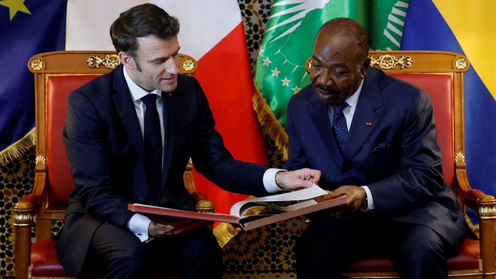 Πρώτη στάση του γάλλου ηγέτη ήταν η Γκαμπόν, όπου ο ομόλογός του Αλί Μπονγκό παρέθεσε δείπνο προς τιμήν του στο προεδρικό μέγαρο.