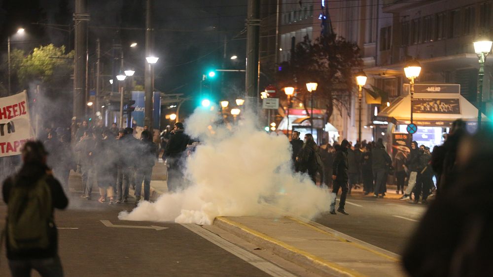 Μέλη ακτιβιστικών οργανώσεων και φοιτητές που διαδήλωναν στους κεντρικούς δρόμους της Αθήνας συγκρούστηκαν με τις αστυνομικές δυνάμεις όταν μια μικρή ομάδα διαδηλωτών επιχείρησε να σπάσει τις τζαμαρίες της εταιρείας.