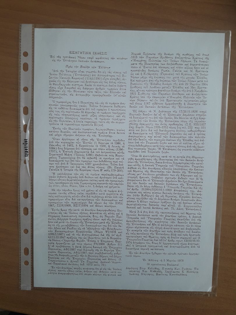 Όλα τα Ιόνια Νησιά βράζουν και ζητούν ανατροπή του νόμου που αναφέρει πως ότι δεν είναι ιδιωτικό, είναι δημόσιο. Με λύπη είδα χθες στο Δημοτικό Συμβούλιο να τίθενται από πλευράς Δημοτικής Αρχής θέματα εκτός ημερήσιας διάταξης πολύ μικρότερης σημασίας. Η Δημοτική Αρχή δεν ήθελε να συζητηθεί το θέμα με τις δασικές εκτάσεις που δηλώνονται υπέρ του δημοσίου. Λυπάμαι για το ότι η προσπάθεια που είχε ξεκινήσει πριν πέντε χρόνια για την κατοχύρωση της δημοτικής και της επιχώριας περιουσίας δεν προχώρησε. Η σημαία της σημερινής Δημοτικής Αρχής που ήταν να αξιοποιηθεί η δημοτική περιουσία πήγε περίπατο, αποδείχτηκε άλλο ένα ψέμα.