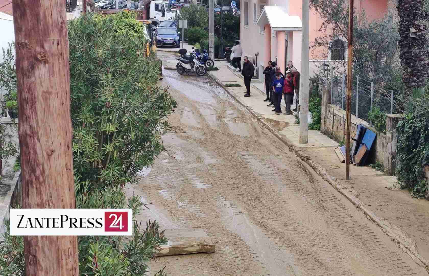 Οι κάτοικοι της Αγίας Τριάδας , για άλλη μια φορά, επιστράτευσαν τη δύναμη και την υπομονή τους και με σκούπες προσπαθούσαν να απομακρύνουν τη λάσπη από τα σπίτια τους .