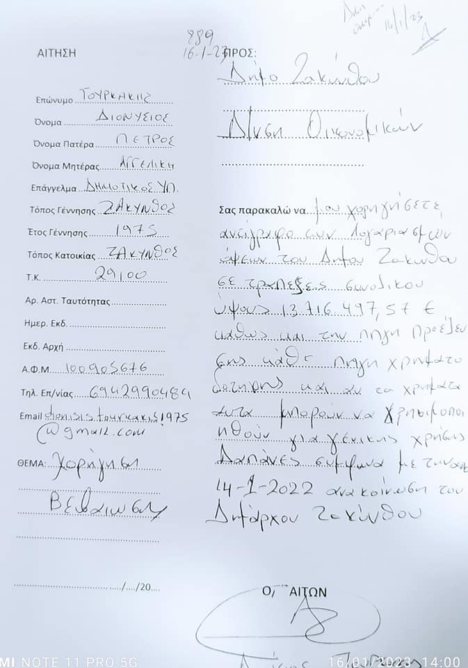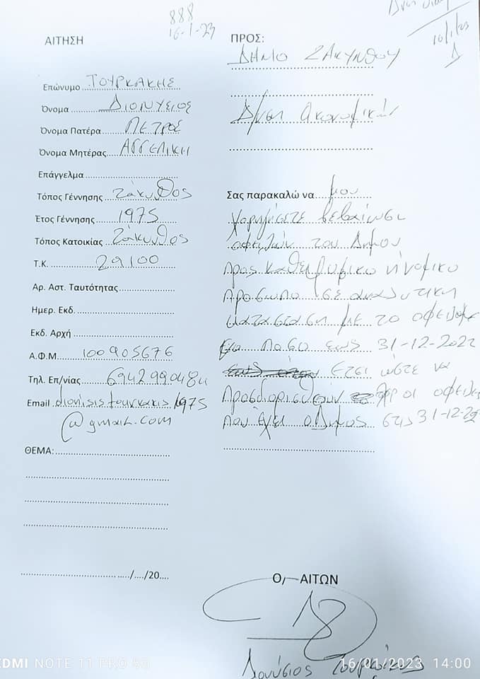 Ύστερα από την 14 -1-2023 ανακοίνωση του κ. Δημάρχου Ζακύνθου, σχετικά με ενημέρωση για οικονομικά στοιχεία του Δήμου Ζακύνθου, κατατέθηκαν σήμερα 16-01-2023, δυο αιτήσεις προς το Δήμο Ζακύνθου και την Διεύθυνση Οικονομικών υπηρεσιών, ως εξής: