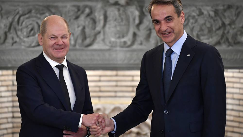 Της συνάντησης προηγήθηκε ξενάγηση του Ολαφ Σολτς από τον Μητσοτάκη στον Ιερό Βράχο της Ακρόπολης.