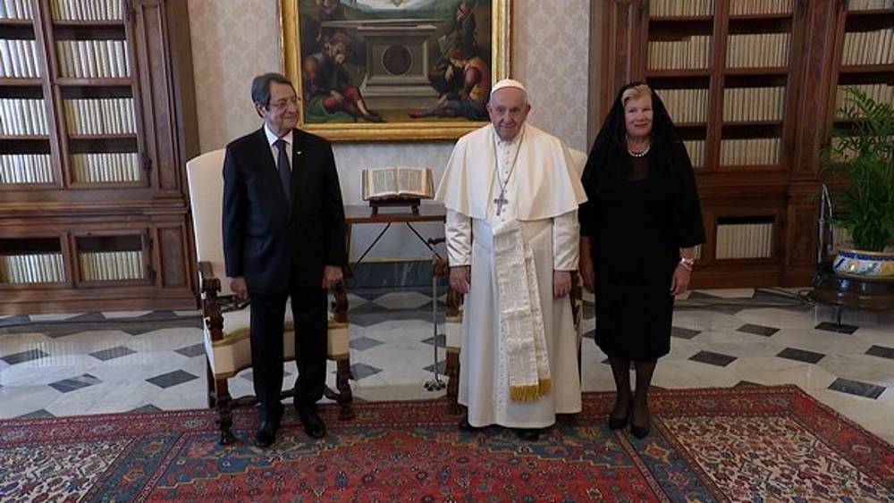 Σύμφωνα με ανακοίνωση της Προεδρίας, ο Πρόεδρος Αναστασιάδης, ο οποίος έτυχε την Δευτέρα επίσημης υποδοχής στο Αποστολικό Μέγαρο και είχε συναντήσεις με τον Πάπα και τον Πρωθυπουργό της Αγίας Έδρας, Καρδινάλιο Πιέτρο Παρολίν, ανέφερε σε δηλώσεις του ότι «θεωρώ μια ιδιαίτερα τιμητική και δημιουργική τη συνάντηση με την Αυτού Αγιότητα τον Πάπα».