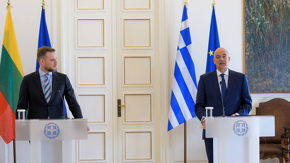 «Οφείλουμε να σταθούμε απέναντι σε κάθε αναθεωρητική ιδεολογία που θέλει να καταστρέψει την τάξη πραγμάτων που υπερασπίζεται η ΕΕ», υπογράμμισε ο υπουργός Εξωτερικών Νίκος Δένδιας, μετά τη συνάντησή του με τον υπουργό Εξωτερικών της Λιθουανίας Γκαμπριέλιους Λαντσμπέργκ (Gabrielius Landsbergis).