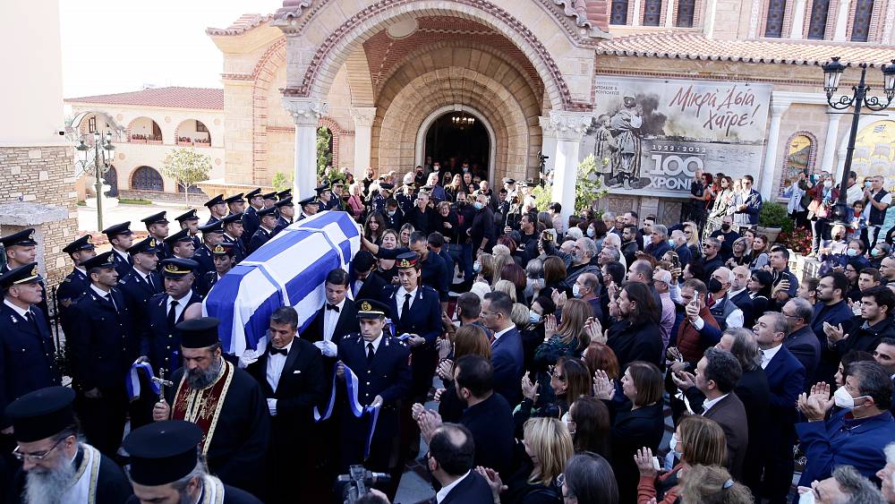Το φέρετρο του δις Ολυμπιονίκη και αναπληρωτή εκπρόσωπου Τύπου του ΣΥΡΙΖΑ, που πέθανε σε ηλικία 42 ετών, ήταν τυλιγμένο με την ελληνική σημαία και η μπάντα του Πυροσβεστικού Σώματος συνόδευσε τη σορό του στην τελευταία της κατοικία.