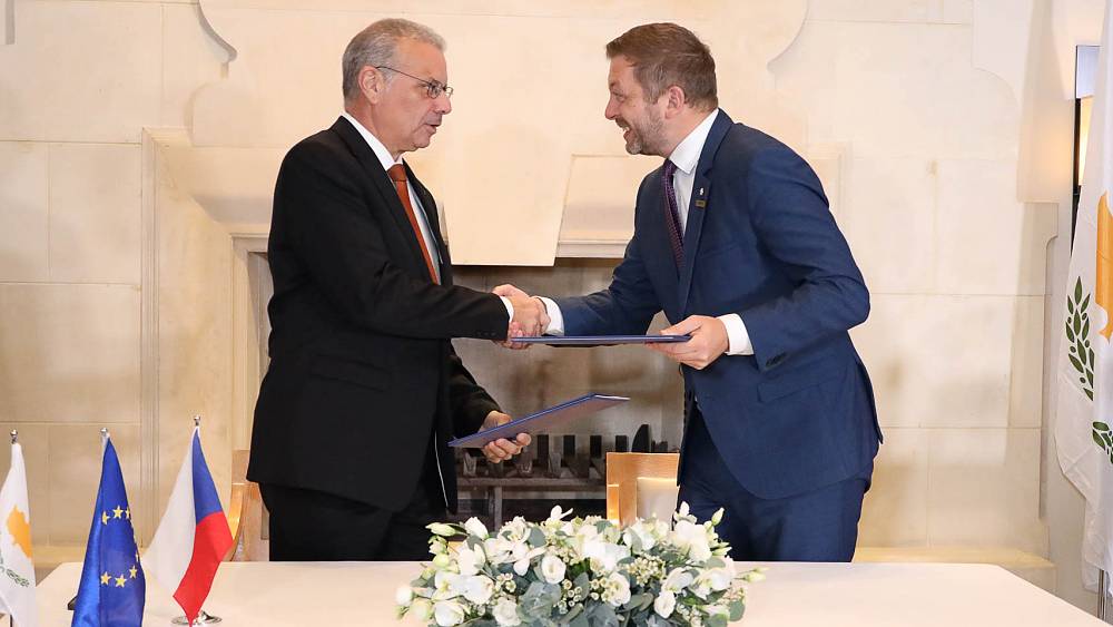Κύπρος και Τσεχία υπέγραψαν συμφωνία συνεργασίας και οικονομικής ενίσχυσης της Μεγαλονήσου για την αντιμετώπιση των μεταναστευτικών ροών, που ολοένα και αυξάνονται. Η συνάντηση Νίκου Νουρή και Βιτ Ρακουσάν έγινε στο πλαίσιο της συνόδου MED5 των υπουργών Μετανάστευσης και Ασύλου.