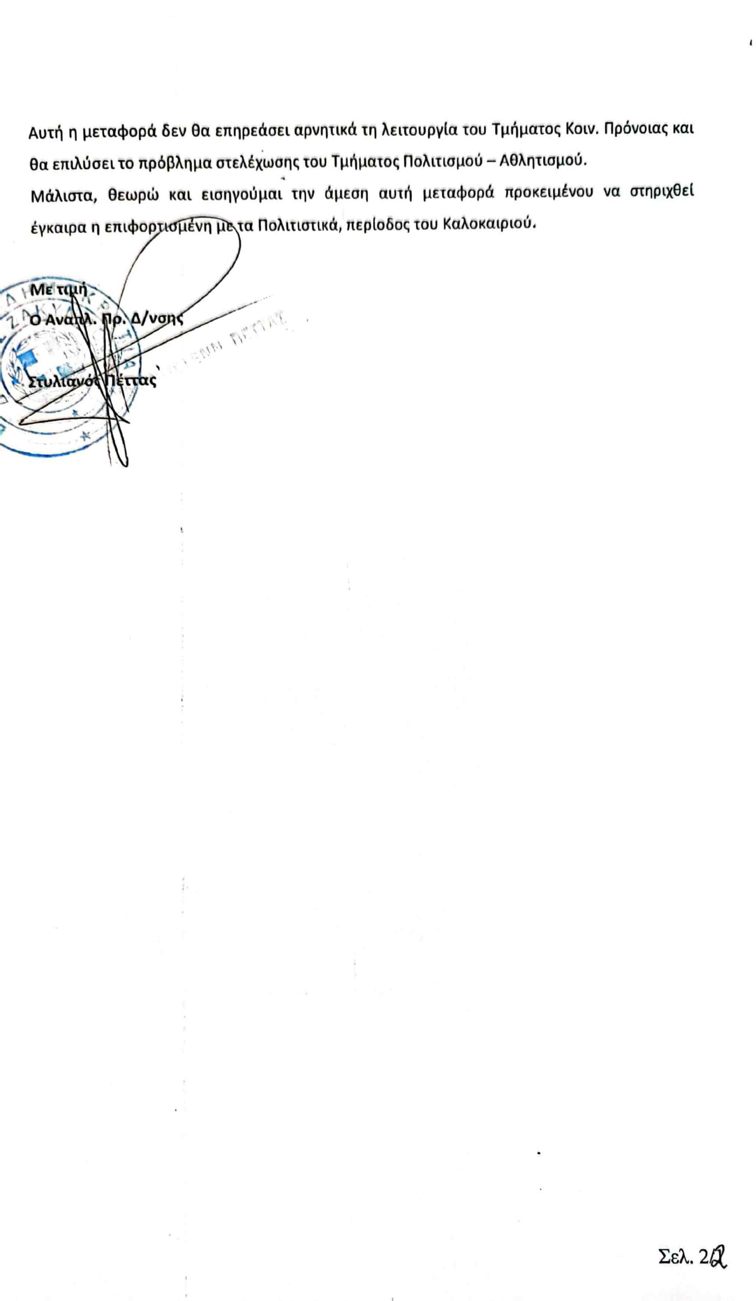 -Την κατασκευή υπόστεγου στο Δημοτικό Στάδιο.