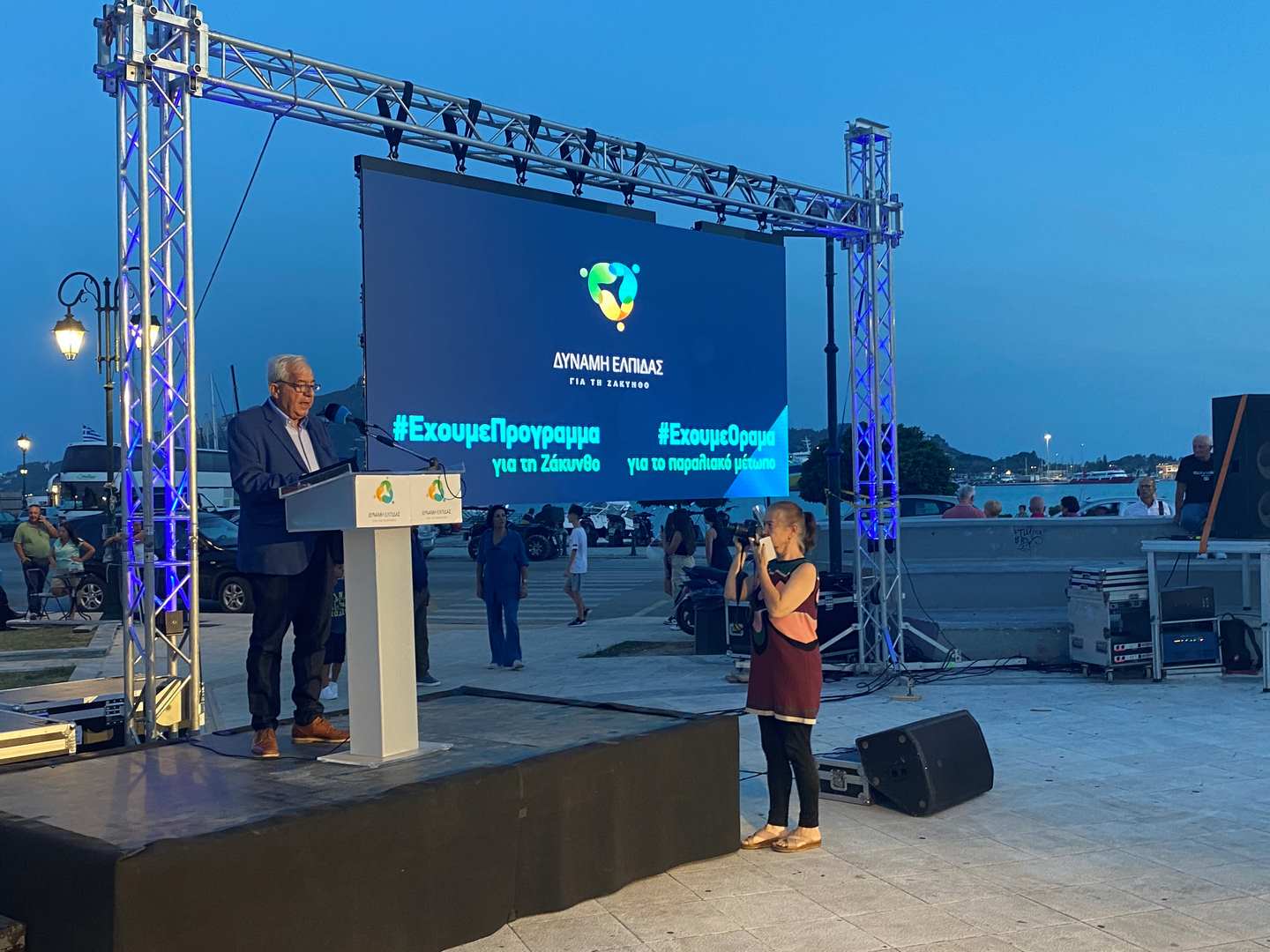 Μάλιστα, τόνισε ότι το πρόγραμμα του συνδυασμού «Δύναμη Ελπίδας για τη Ζάκυνθο» διαμορφώθηκε με τη συνδρομή ειδικών επιστημόνων αλλά κυρίως μέσα από τον διαρκή διάλογο με την τοπική κοινωνία. «Πήγαμε σε όλη τη Ζάκυνθο, ήρθαμε σε επαφή με τους ανθρώπους του νησιού μας, ακούσαμε τα προβλήματά τους, μοιραστήκαμε αγωνίες. Επίσης, ήρθαμε σε επαφή με ειδικούς επιστήμονες και με εταιρείες εξειδικευμένες στο αντικείμενό τους και παραγγείλαμε μελέτες που να προτείνουν τις κατάλληλες λύσεις στα μεγάλα προβλήματα της Ζακύνθου, λαμβάνοντας υπόψιν τις ιδιαιτερότητες του τόπου μας» ανέφερε χαρακτηριστικά.