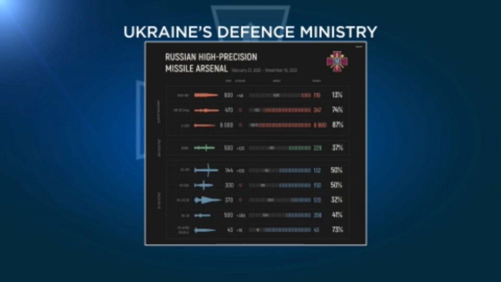 Δείτε τα νούμερα που δίνει το Υπουργείο Άμυνας της Ουκρανίας παρέχοντας λεπτομέρειες πόσους πυραύλους η Ρωσία έχει χρησιμοποιήσει από το οπλοστάσιό της από την έναρξη της πλήρους κλίμακας εισβολής τον Φεβρουάριο και τί έχει απομείνει.
