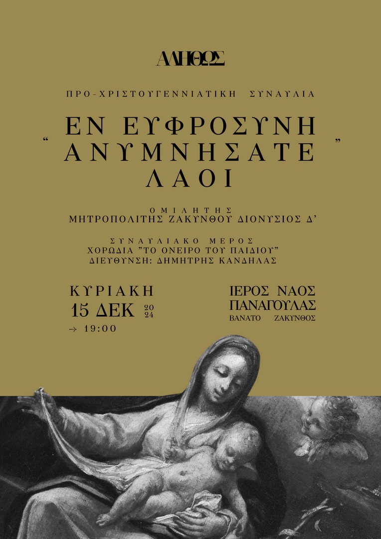 The post Μορφωτικό Κέντρο Λόγου και Τέχνης «Αληθώς»: Χριστουγεννιάτικη Συναυλία με ομιλία Μητροπολίτη Ζακύνθου | Αναφορά στην θεολογία της Γέννησης του Χριστού appeared first on ZANTETIMES.GR.