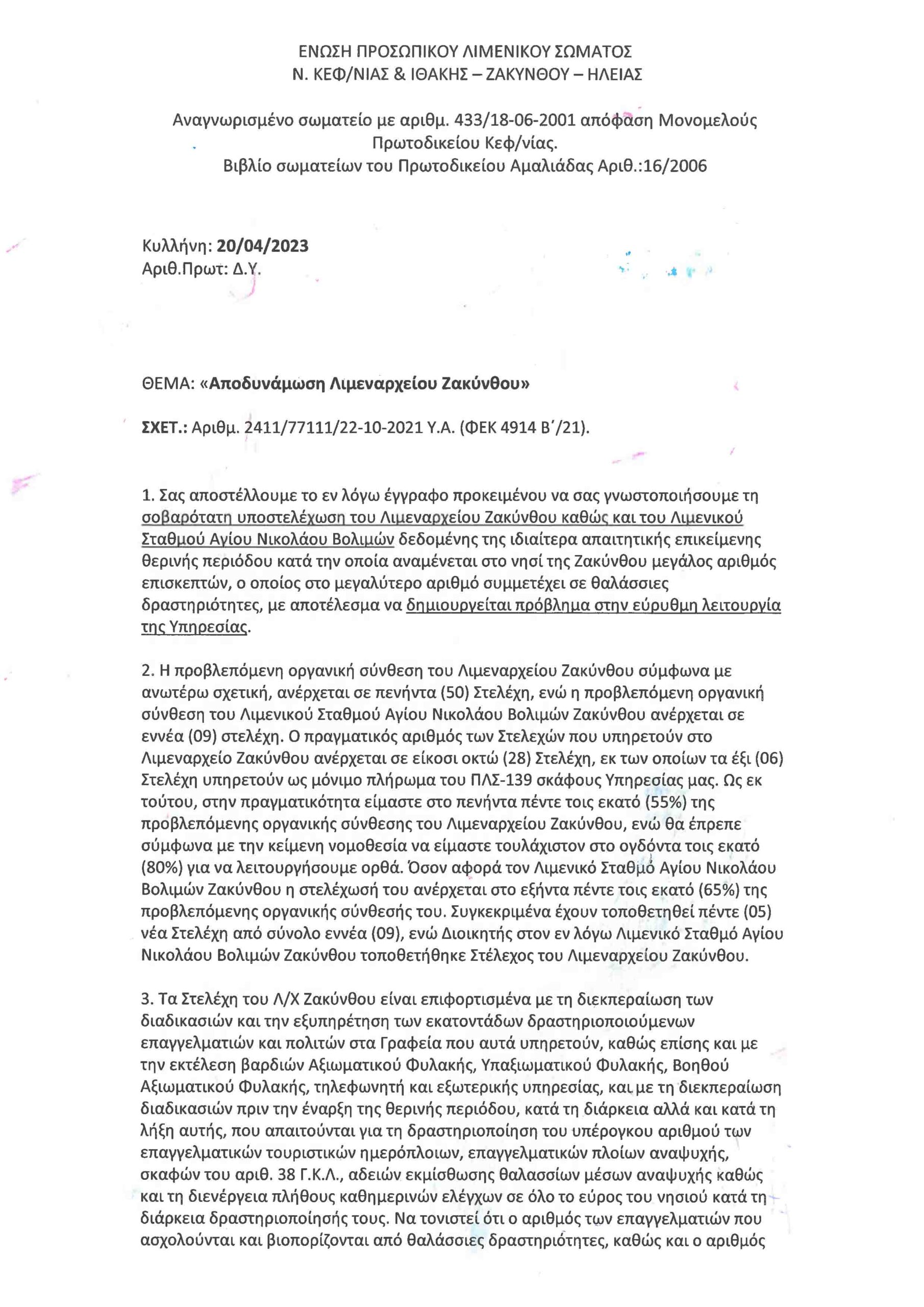 Ένωση Προσωπικού Λιμενικού Σώματος: Ζητά την άμεση ενίσχυση του Λιμεναρχείου Ζακύνθου και του Λιμενικού Σταθμού Αγίου Νικολάου Βολιμών Post author By Impartial Press Bot Post date April 27, 2023 Categories In ΖΑΚΥΝΘΟΣ The post Ένωση Προσωπικού Λιμενικού Σώματος: Ζητά την άμεση ενίσχυση του Λιμεναρχείου Ζακύνθου και του Λιμενικού Σταθμού Αγίου Νικολάου Βολιμών appeared first on ZANTETIMES.GR.