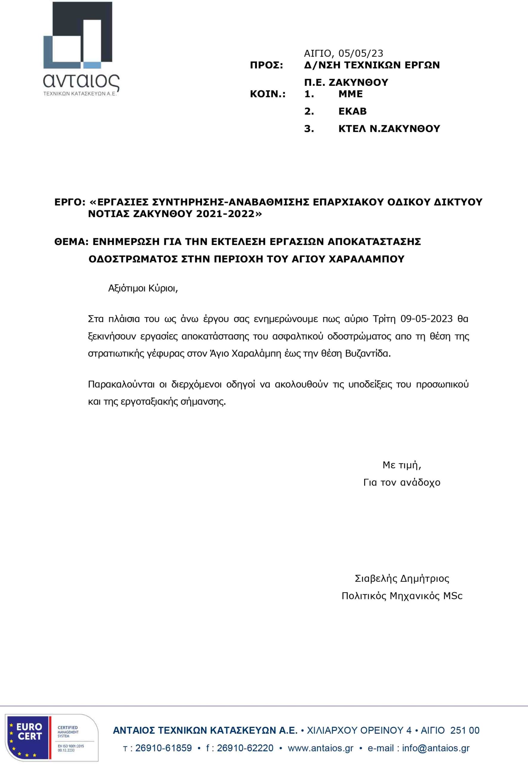 Ανταιος Τεχνικών Κατασκευών Α.Ε: Άγιος Δημήτριος Ζακύνθου | Εργασίες αποκατάστασης ασφαλτικού οδοστρώματος στην περιοχή του Αγίου Χαραλάμπη Post author By Impartial Press Bot Post date May 8, 2023 Categories In ΖΑΚΥΝΘΟΣ The post Ανταιος Τεχνικών Κατασκευών Α.Ε: Άγιος Δημήτριος Ζακύνθου | Εργασίες αποκατάστασης ασφαλτικού οδοστρώματος στην περιοχή του Αγίου Χαραλάμπη appeared first on ZANTETIMES.GR.