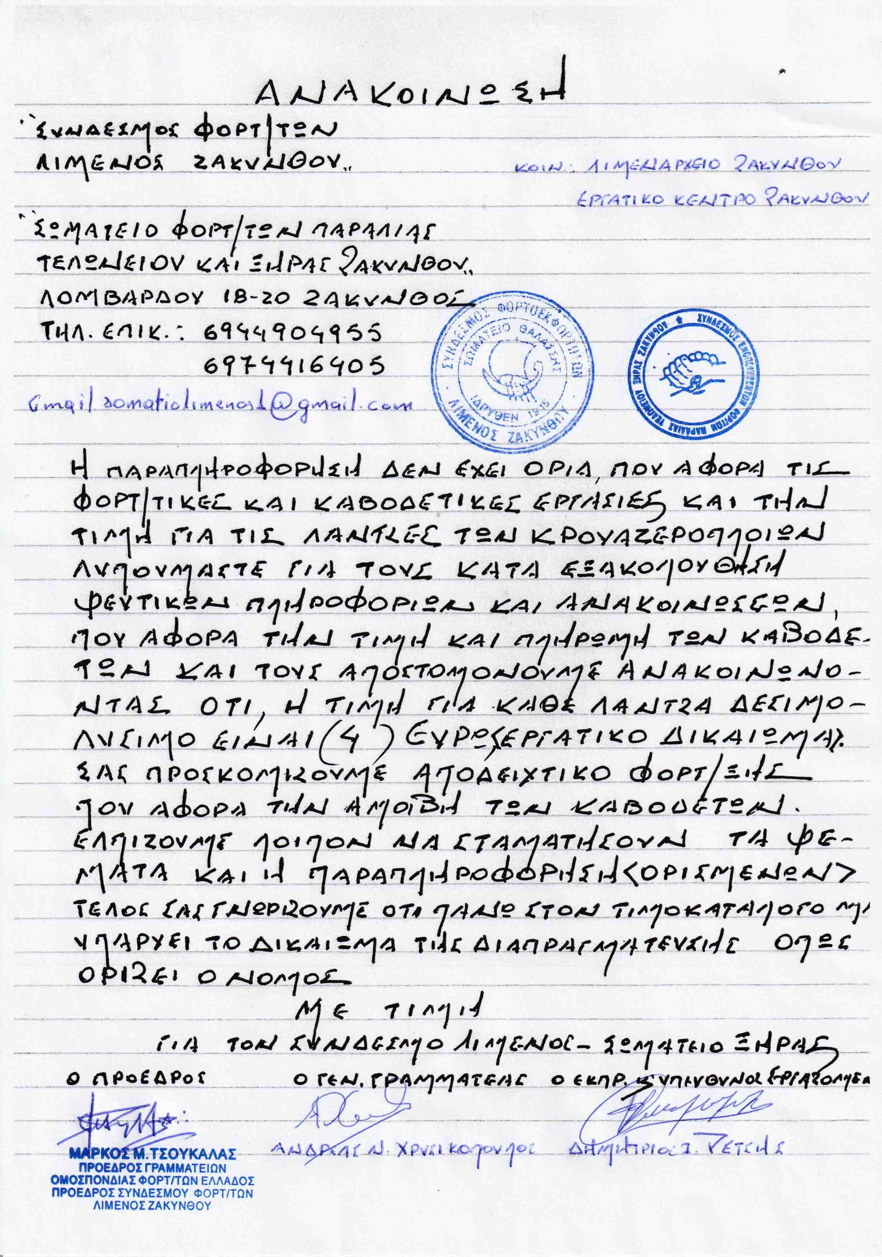 The post Σύνδεσμος Φορτ/των Λιμένος & Σωματείο Φορτ/των παραλίας τελωνείου και Ξηράς Ζακύνθου: Η παραπληροφόρηση δεν έχει όρια | Ενημέρωση σχετικά με τις φορτ/τικές και καθοδεστικές εργασίες appeared first on ZANTETIMES.GR.