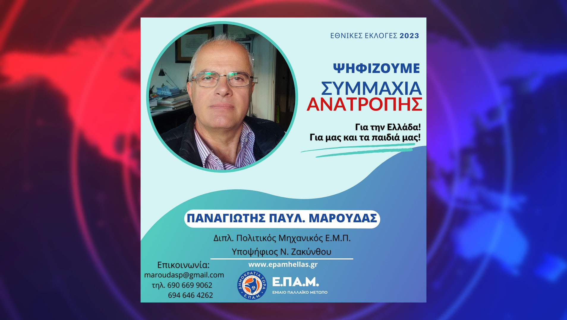 The post Παναγιώτης Μαρούδας: Σας προσκαλώ να τιμήσετε με την ψήφο σας την «ΣΥΜΜΑΧΙΑ ΑΝΑΤΡΟΠΗΣ» | Επικεφαλής ο Δημήτρης Καζάκης πρόεδρος του ΕΠΑΜ (Βίντεο) appeared first on ZANTETIMES.GR.
