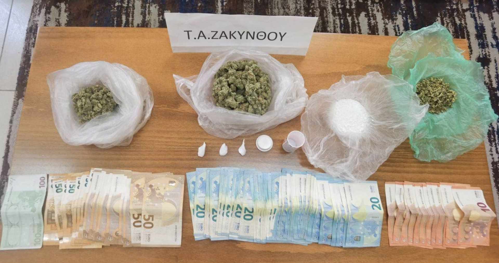 Κατασχέθηκαν -131,3- γραμμάρια ακατέργαστης κάνναβης, -34,5- γραμμάρια κοκαΐνης, -1- κινητό τηλέφωνο και το χρηματικό ποσό των -2.560- ευρώ