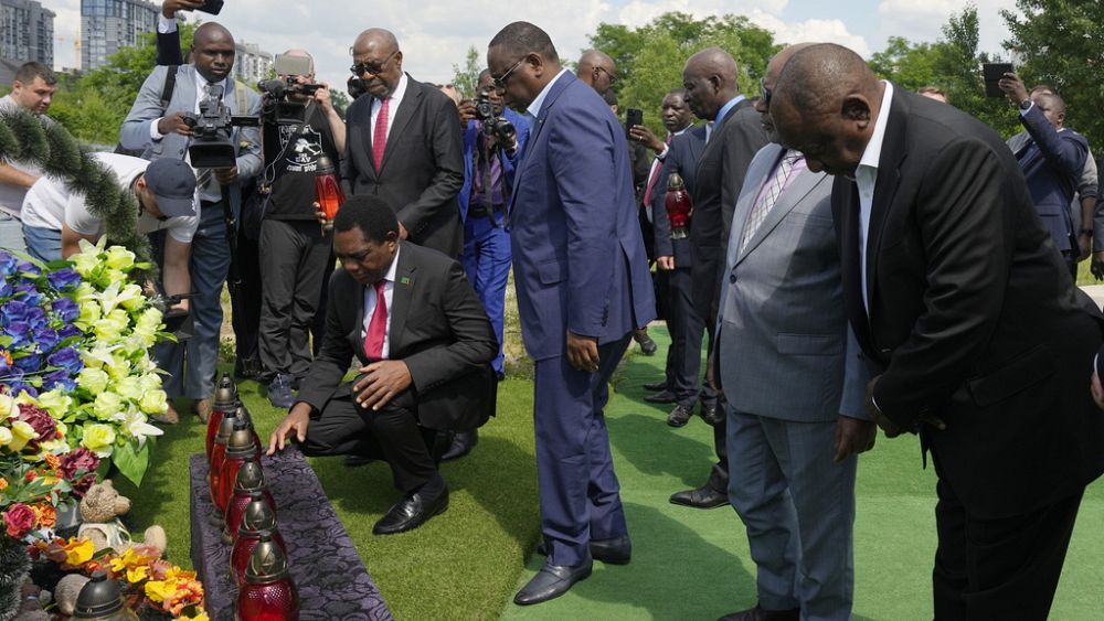 Η αφρικανική αποστολή ξεκίνησε την επίσκεψή της στην Ουκρανία από την Μπούτσα, όπου ρωσικά στρατεύματα φέρονται να διέπραξαν ωμότητες εναντίον αμάχων μετά την εισβολή τους στην Ουκρανία, τον Φεβρουάριο του 2022.