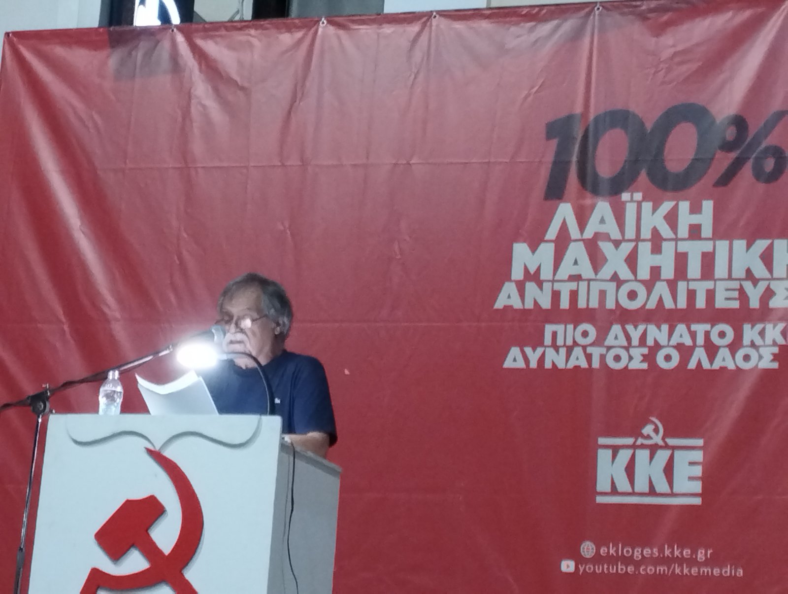 Σε αυτή τη βάση, αναφέρθηκε στις «πολύτιμες» για το σύστημα υπηρεσίες των ΣΥΡΙΖΑ και ΠΑΣΟΚ, στο ρόλο που και οι δύο έπαιξαν την προηγούμενη τετραετία διακυβέρνησης της ΝΔ, που ψήφισαν το 50% και το 70% των νόμων της αντίστοιχα. Τόνισε, ότι ήταν και αυτή η στάση του ΣΥΡΙΖΑ που «τελικά τροφοδότησε τη νίκη της ΝΔ αλλά και νεκρανάστησε το αμαρτωλό ΠΑΣΟΚ, πλασάροντας το ως προοδευτική δύναμη». Θύμισε «έργα και ημέρες» του ΠΑΣΟΚ, των μνημονίων, των πολεμικών εμπλοκών σε Ιράκ, Γιουγκοσλαβία, της συγκυβέρνησης Σαμαρά – Βενιζέλου, με γραμματέα τον Ν. Ανδρουλάκη «που μέσω Τσίπρα έγινε πρόοδος» και κάλεσε να μην χαθεί ούτε μια εργατική – λαϊκή ψήφος προς το ΚΚΕ.