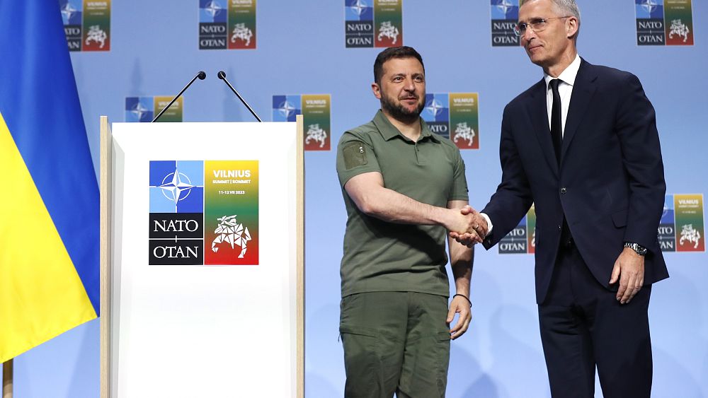 Η Ουκρανία[1] βρίσκεται τώρα πιο κοντά από πότε στο ΝΑΤΟ[2], δήλωσε σήμερα ο γενικός γραμματέας της Συμμαχίας Γενς Στόλτενμπεργκ στη διάρκεια κοινής συνέντευξης Τύπου που παραχώρησε με τον Ουκρανό πρόεδρο Βολοντίμιρ Ζελένσκι από το Βίλνιους της Λιθουανίας.